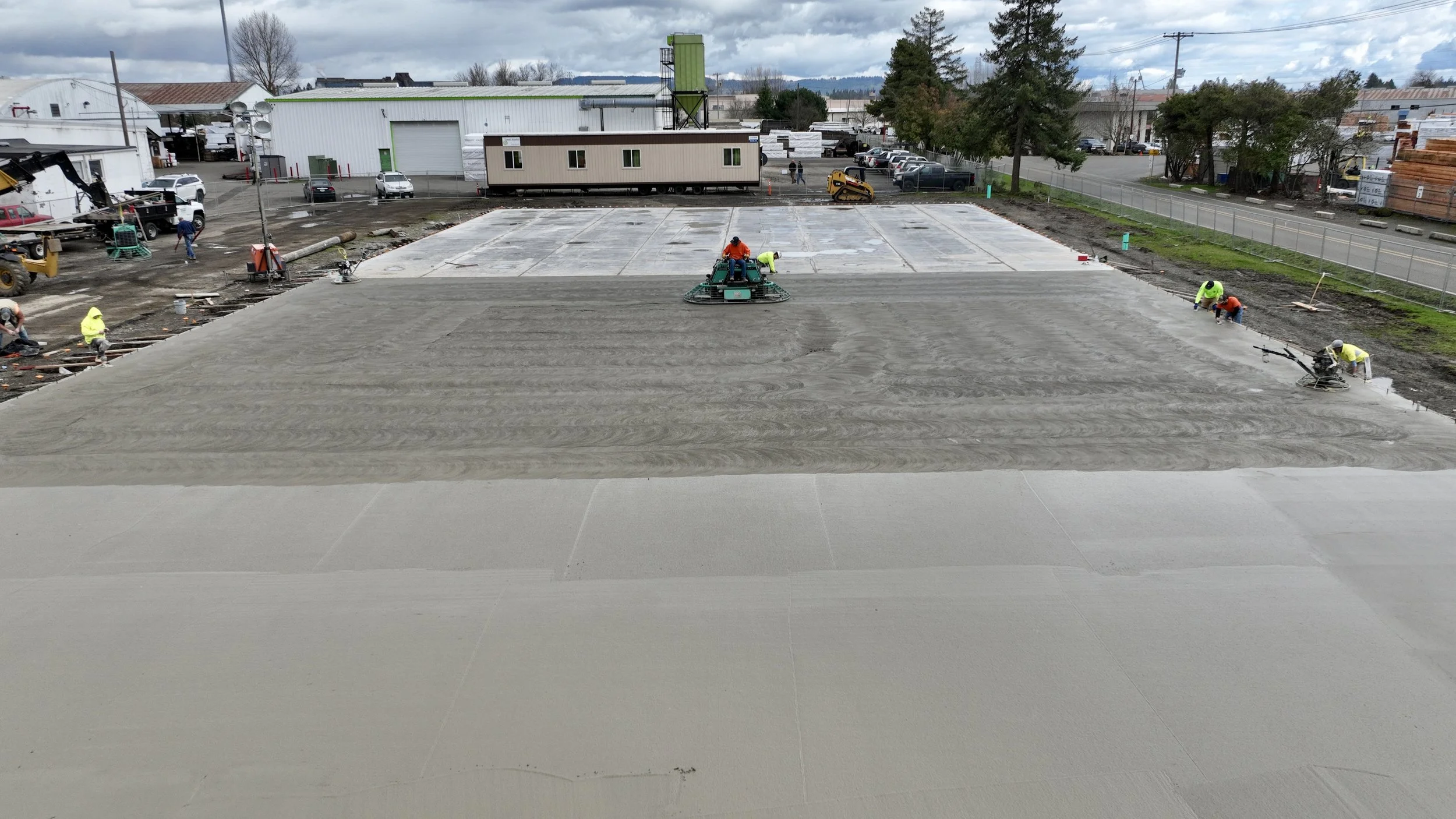 SOLID CARBON’s biggest pour to date, this 440 cubic yard factory flooring for New Energy Works 20,000 square foot beamery in McMinnville, Oregon marks 1,000 cubic yards of SOLID CARBON concrete on the earth. Using our patent-pending BioLOCK® 1.0 additive, we took carbon that would otherwise be in our atmosphere contributing to global warming, and sequestered it into durable concrete.